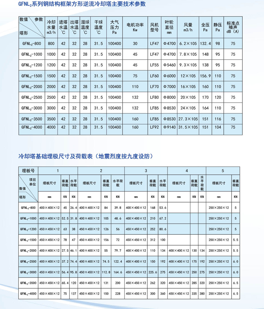 工業(yè)型玻璃鋼冷卻塔,室友機(jī)械工業(yè)部第四設(shè)計(jì)研究院在原設(shè)計(jì)的同類塔測(cè)試數(shù)據(jù)基礎(chǔ)上改進(jìn)設(shè)計(jì)的。本設(shè)計(jì)的特點(diǎn)是冷卻塔風(fēng)機(jī)配有變扭矩雙速電機(jī);當(dāng)氣溫較低時(shí),例如晚上,電機(jī)開(kāi)低速,冷卻噪聲可低3-5dB(A)。此外,選用雙速電機(jī)節(jié)電顯著。多臺(tái)冷卻塔配單速電機(jī)時(shí),為了節(jié)電,當(dāng)空氣濕球溫度低時(shí),可停部分電機(jī),但仍比用雙速電機(jī)(以年計(jì))多耗電40%。